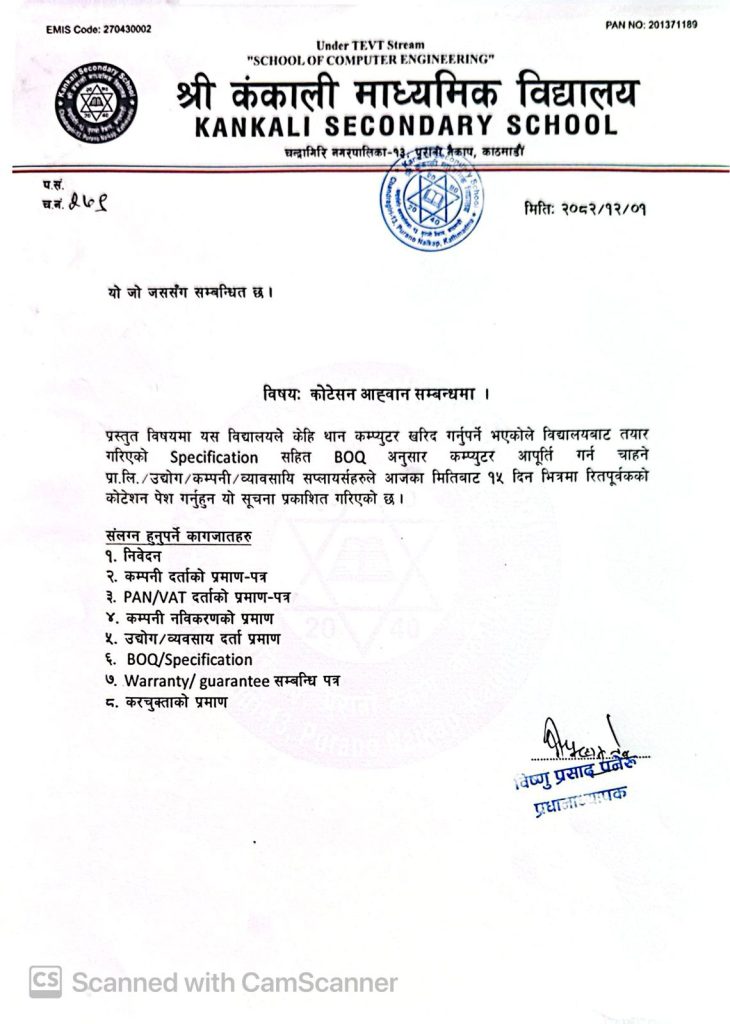 सिलबन्दी दरभाउपत्र आहवानकाे सूचना